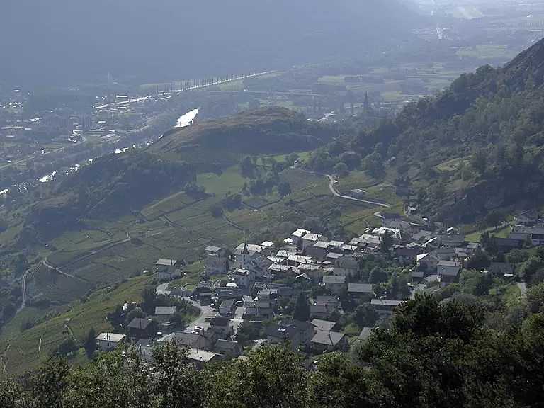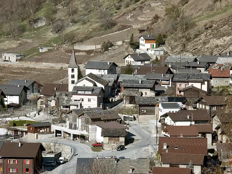 St. German sitzt als Haufendorf auf einer Hügelkuppe am Fuss der rechten Talflanke. Der liebliche Hügel ist noch heute - im Gegensatz zum gletschergescheuerten Fels des "Heidnisch Biel" - als riesige Sackung des abschüssigen Hangs kenntlich, folgt das Auge doch der schräg emporsteigenden Abbruchkante vom Talweg bis hoch über dem Dorf.