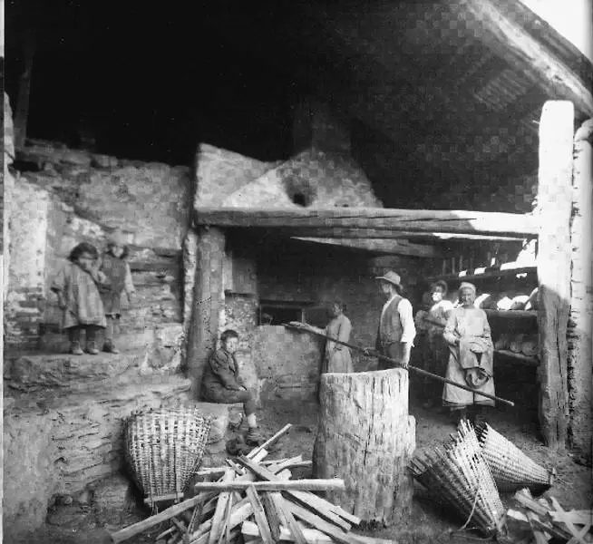 Familie aus dem Lötschental beim Brotbacken (Niederer)