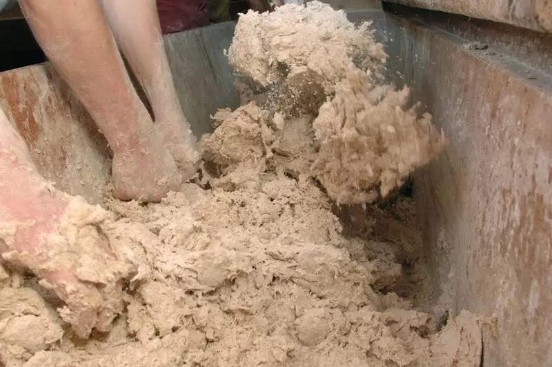 Zum "Teiggen" braucht es kräftige Hände. Foto Peter Salzmann