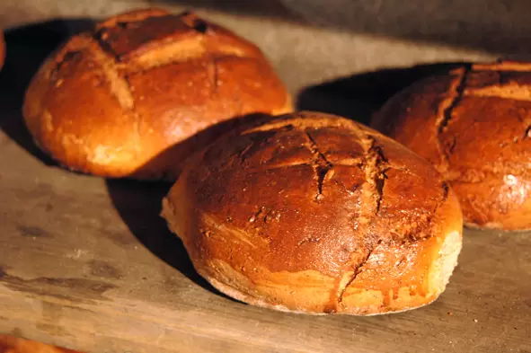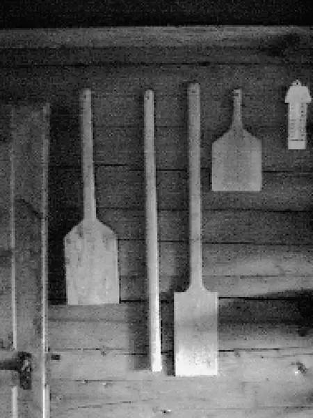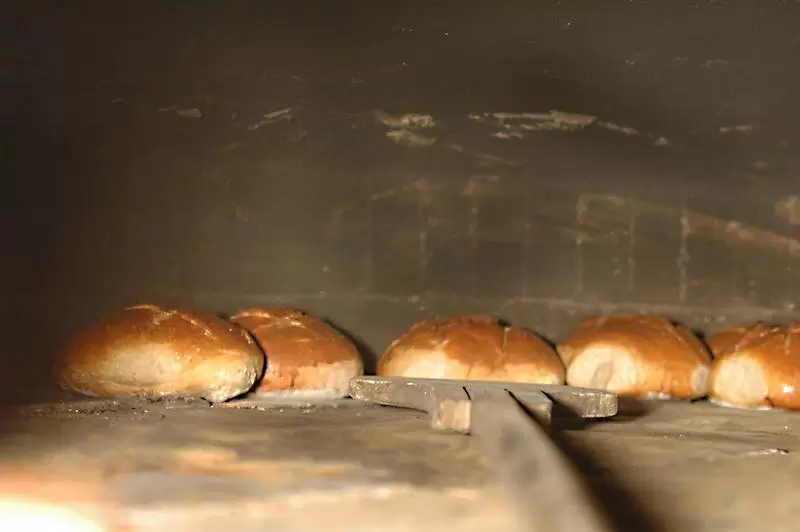 War das Brot genügend gebacken, wurde es mit der Backofenschaufel aus dem Backofen geholt und in den Lagerraum zum Auskühlen gebracht. Der Backofen konnte nun wieder befeuert werden und eine neue Ladung gebacken werden. Manchmal wurde bis zu fünf Mal am Tage gebacken. Dies ergab dann eine doch recht ansehnliche Menge von bis zu 300 Broten.