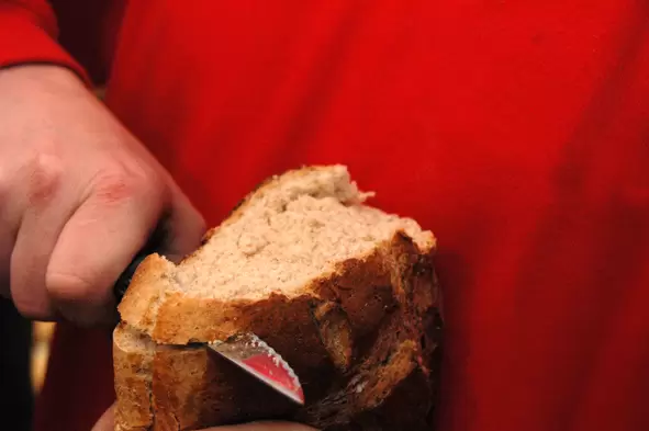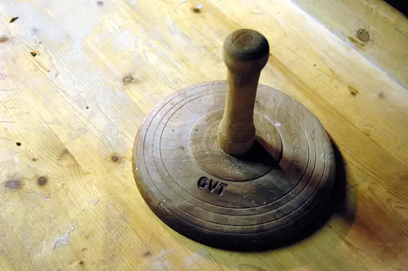 Alles beginnt wie immer bei einer Vorlage: dieses Brotmodel hilft runde, flache Brote zu produzieren. Foto Peter Salzamann.