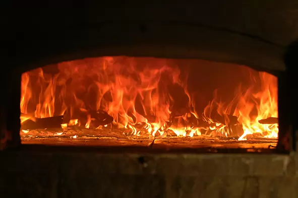 Im Vorraum (Fiirhüss, Chuchi) wurde inzwischen der Backofen angeheizt, d.h. in der Backofenhöhle wurde ein Feuer (meistens von mallum Holz , Holz von Laubbäumen) angezündet. War die Hitze gross genug (die wurde jeweils von einem Spezialisten nach Gefühl bestimmt), wurden die glühenden Kohlen entfernt, der Backofen mit einem Tuch gereinigt und die Laibe mit einer Holzkelle mit langem Stiel eingeschossen (in den Backofen gelegt). In einem Backvorgang wurden 50 bis 60 Brote gebacken.