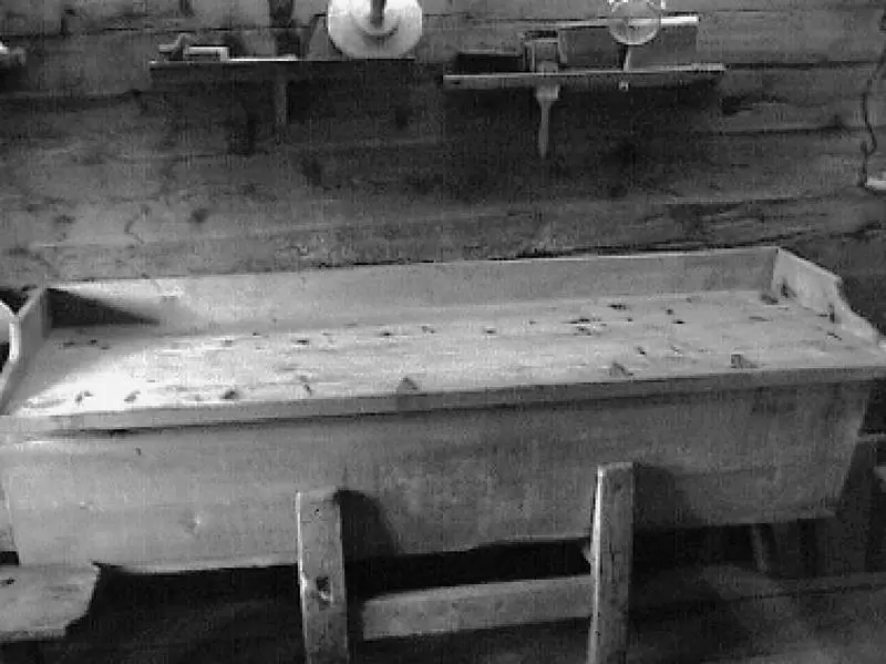 (auf diesem Tisch wird der Teig geknetet und geformt; Schmid: Gebäude)