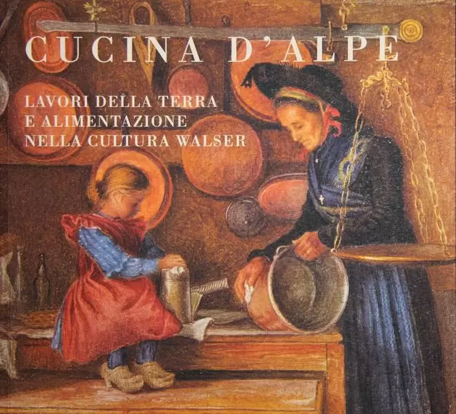 Mit einem Text von Enrico Rizzi und einem Gedicht der Pomatter Walserdichterin Anna Maria Bacher wartet die reich illustrierte Cucina d’Alpe: Lavori della terra e alimentazione nella cultura Walser auf. Der Untertitel verweist auf die gleichnamige Ausstellung, die von März bis September 2003 in Pomatt/Formazza im Rahmen von «750 Jahre Walser» (1253-2003) gezeigt wurde. Das Buch vermittelt interessante Einblicke in den alpinen Getreidebau, die Milchwirtschaft uns die Bodenpflege. Im Anhang sind 30 alte Walser Rezepte aus den italienischen und bündnerischen Walsersiedlungen versammelt. Das in italienischer Sprache erschienene, schön aufgemachte 84 Seiten starke Buch wurde von der Fondazione Enrico Monti in Anzola d’Ossola (VB) herausgegeben. Den Umschlag schmückt das ansprechende Bild «Cucina in Val d’Ayas» aus der Zeit um 1900 von Estella Canziani.