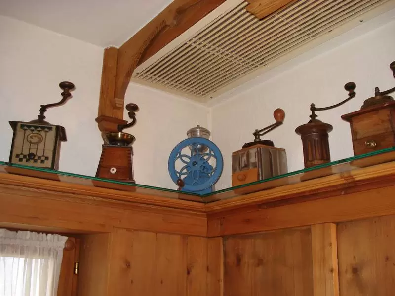 Ein ganz spezielle Mühle ist die Kaffemili, Kaffeemühle. Kaffee wurde erst sehr spät zu einem Volksgetränk und wurde sehr sparsam eingesetzt. Ursprünglich röstete die Hausfrau ihren Kaffee selber – ein Akt, von dem entscheidend die Qualität des Kaffees abhing. Der geröstete Kaffee wurde dann in der Handmühle gemahlen. Meistens war die Mühle ein einfacher Holzkasten mit dem metallenen Mahlwerk und einer Mahlkurbel oben und einer kleinen Schulblade für den gemahlen Kaffee unten. Die Zubereitung des Kaffees war wiederum ein gut gehütetes Hausfrauengeheimnis. Die einte brühte ihn auf, die andere kochte den Kaffe gleich im Pulver auf; hier wiederum die einte nur ganz kurz, die andere sott ihn stundenlang. Niemand wagte es der Hausfrau nicht zu bestätigen, sie hätte den besten weit und breit.