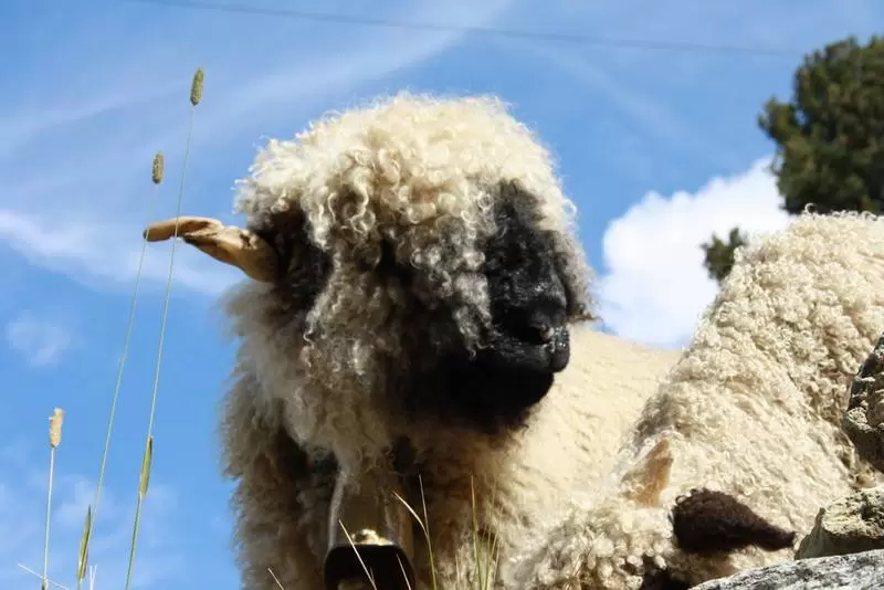 Das Walliser Schwarznasenschaf hat inzwischen soviel Wolle, dass man die Treichel fast nicht mehr sieht. In neuerster Zeit zieht man den Schafen (und teilweise auch den Kühen) nur noch selten Treicheln an.