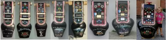 Besonderen Schmuck erfährt der Treichelriemen, Triichilriemo; durch ihn wurde die Kuhtreichel immer mehr zu einem Ojekt für Geschenke bei Jubiläen oder als Preise für Stechfeste oder Ringkämpfe, Schwingu.