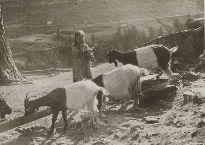 Die Ziegenherde wir (Bettmeralp) zusammengetrieben und dann vom Ziegenhirt auf die Schmalveeweit (Schmalviehweide) getrieben (Foto: Imesch, Bd.2, S.38)