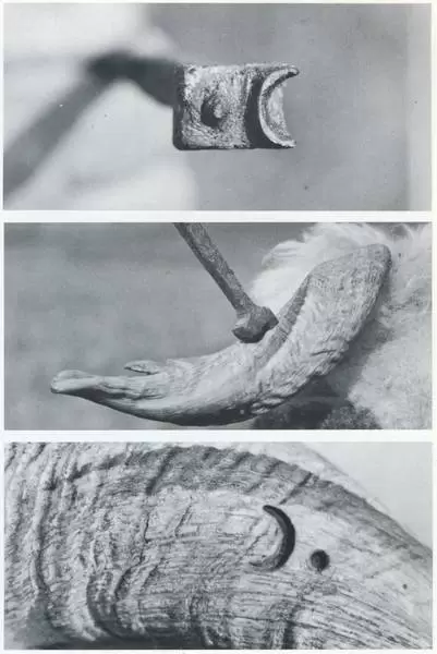 Mit einem Taschenmesser wird die Zeichnung am Ohr angebracht;