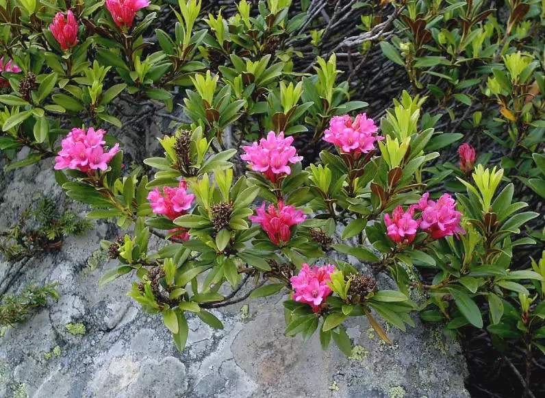 So wird die Alpenrose, Rhododendron ferrungineum, in den verschiedenen Gebieten des Oberwallis genannt; es ist die im ganzen Alpenraum bekannte Pflanze, die z.B. in Österreich und Bayern und dem Name "Almenrausch" daherkommt.