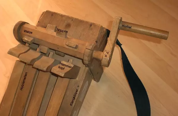 Die Ratsche wird durch das schwungvolle Drehen eines schmalen Holzrähmchens mit einem Holzfederblatt um eine in der Hand gehaltene Achse, an der ein Zahnrad befestigt ist, in Bewegung gesetzt. Das Federblatt rattert um das feststehende Zahnrad und erzeugt dabei je nach Drehgeschwindigkeit ein lautes, knatterndes Geräusch. Ratschen haben üblicherweise eine bis drei parallele Holzblattfedern übereinander.