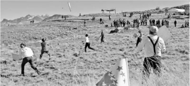 Gilihüsine auf der Bettmeralp, ein dem Hornussen und dem Tschäräten verwandtes Mannschaftsspiel. Quelle: WB, 14.9.12