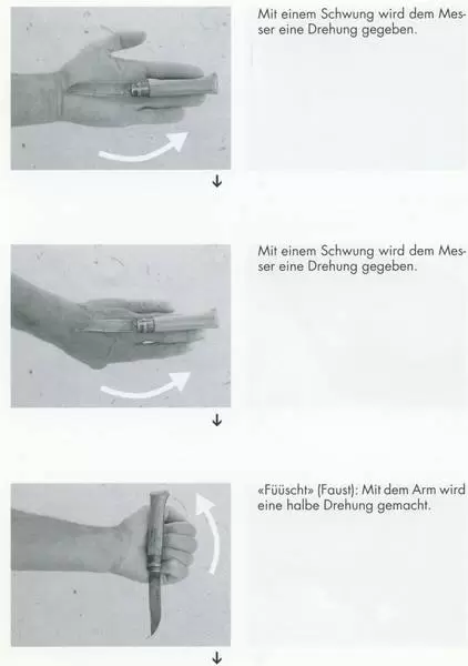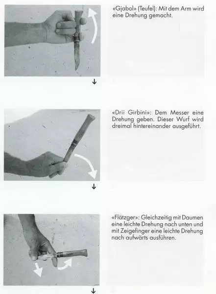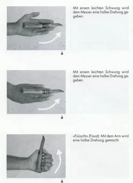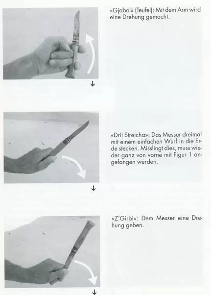 Im Vergleich zur nachfolgend beschriebenen Variante aus den 1960er/70er Jahren existierten zuvor noch eine Reihe weiterer Figuren. So musste beispielsweise das Messer auch von jeder Fingerspitze gespickt werden und teilweise auch vom gebeugten Knie herunter. Demgegenüber waren die umgekehrten Formen (d.h. Wiederholung der ersten vier Formen mit verkehrt ausgerichteterMesserklinge) in der ersten Hälfte des 20. Jahrhunderts nicht gebräuchlich.